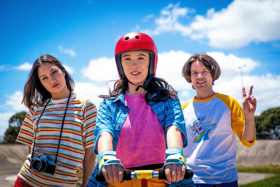 Deadpan in tone, anarchic in spirit and shot with the candy-coloured aesthetic of the forgotten ‘90s extreme-sports film, Squids is a riotous pastiche of much-loved cult classics like BMX Bandits (1983) and Pee-wee’s Big Adventure (1985), infused with a distinct Melbourne underground comedy pedigree behind every frame.